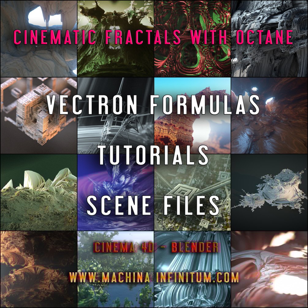48 Vectron Fractals scenefiles for C4d - 4 Tweakable Vectron formulas for any Octane plugin (Blender, Unreal engine...) - Tutorials about Vectron and Octane render for Cinema 4D - Materials designed for fractals.